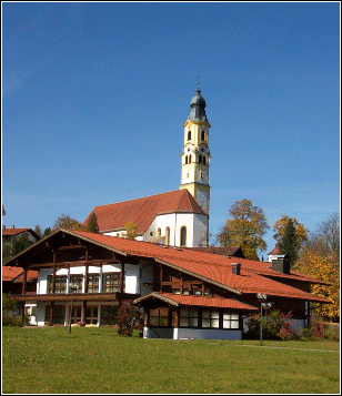 die heutige Pfarrkirche mitten im Pfrontener Tal, jedoch "uffm Berg", erbaut
